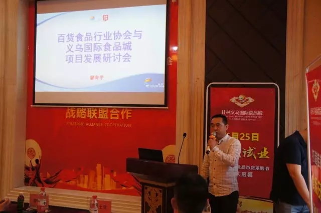 緊接著,桂林市百貨食品行業(yè)協(xié)會廖會長上臺發(fā)言,廖會長總結了全國各地食品百貨行業(yè)發(fā)展趨勢和自己的從業(yè)經驗分享。同時,廖會長結合現(xiàn)在食品百貨行業(yè)市場發(fā)展趨勢及互聯(lián)網的社會潮流,重點闡述了麥得鄰網絡平臺將升級革新現(xiàn)有食品百貨行業(yè)的傳統(tǒng)方式。將依托桂林義烏國際食品城平臺和麥得鄰B2B網絡平臺,將桂林義烏國際食品城打造成集線下實體店+網絡訂貨平臺+集中倉儲配送于一體的新型食品百貨批發(fā)城。最后,廖會長宣布將對所有進駐義烏國際食品城的VIP財富俱樂部成員開放麥得鄰B2B訂貨平臺,實現(xiàn)食品百貨行業(yè)渠道線上線下渠道與物流配送的無縫銜接,實現(xiàn)區(qū)域強勢品牌聯(lián)盟。