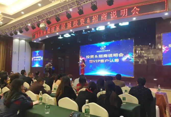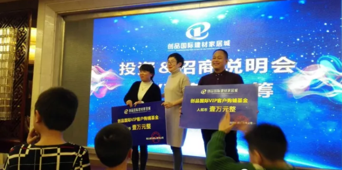 11月23日,創(chuàng)品國際建材家居城“投資&招商說明會暨VIP客戶盛大認籌”活動在衡山神龍盈佳酒店盛大召開。現(xiàn)場500余名來賓歡聚一堂,共同見證了“創(chuàng)品國際建材家居城投資&招商說明會及VIP金卡認籌”這一行業(yè)盛典。