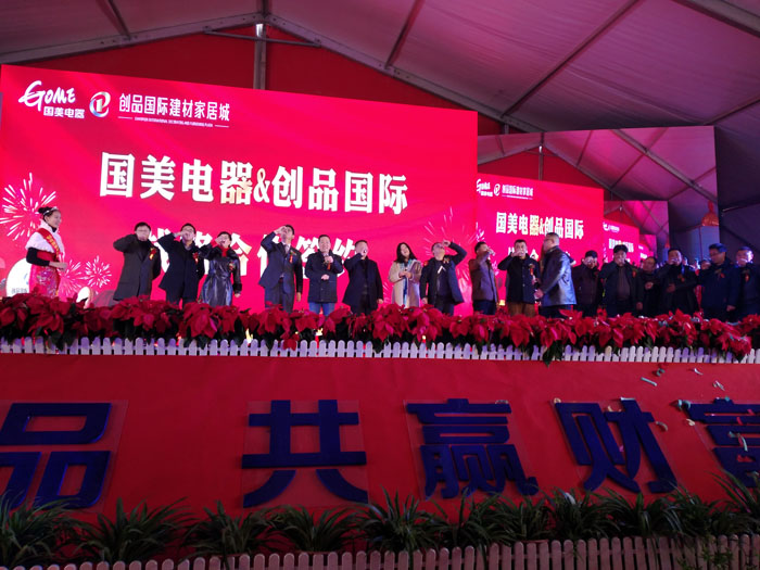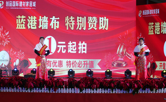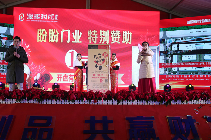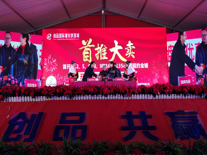 開盤儀式隨著創品國際董事長陳春平先生敲響銅鑼聲中宣布創品國際建材家居城正式開盤。