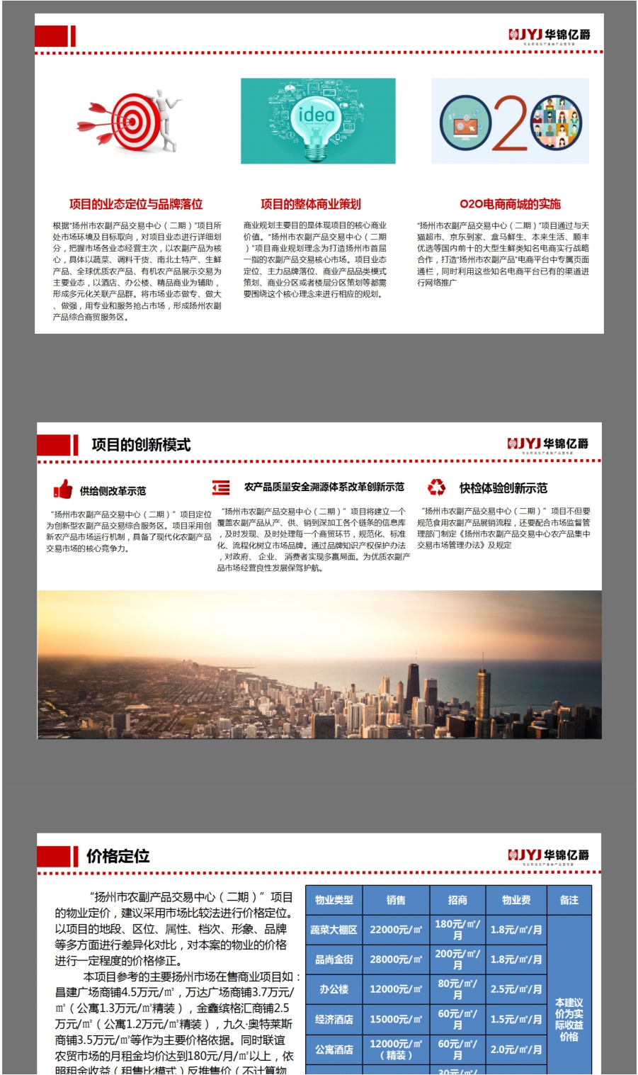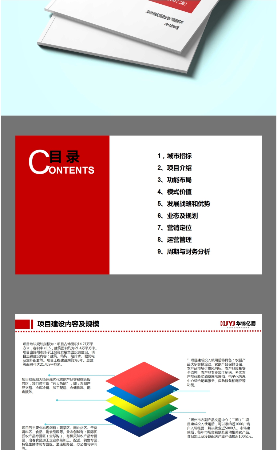 “揚州市農副產品交易中心(二期)”項目建設將成為揚州市商貿物流園區的高效集約、協同共享、融合開放、綠色環保項目,規劃打造:農副產品交易、冷庫冷鏈、加工配送、倉儲物流、配套服務“五大功能”。真正體現和響應國家的“供給側改革”精神。同時,揚子江投資發展集團結合自身優勢與資源,借助“互聯網+”發展智慧農副產品物流,促進產業轉型升級,以全球化商貿視野,打造一個“惠民生活、智慧供給”的現代化農副產品交易綜合服務區項目。