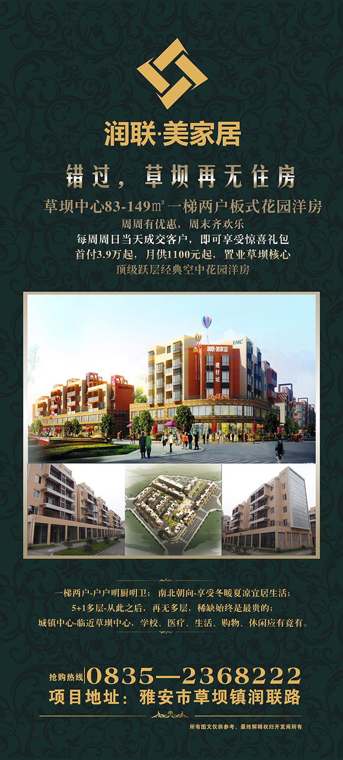 潤聯(lián)美家居建材城,位于四川雅安市,由香港潤聯(lián)國際投資有限公司投資,雅安市潤聯(lián)投資置業(yè)有限公司開發(fā)并傾力打造的雅安市中高端家具建材飾品以及家裝一體化的大型生態(tài)型家居購物MALL。