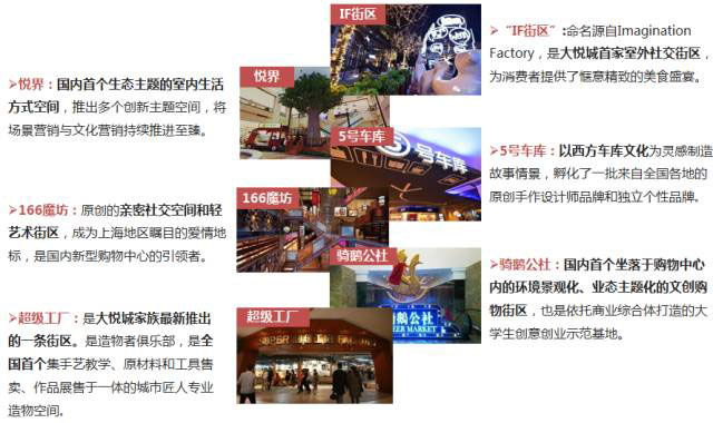 以大悅城為例,在原有商場的基礎上,打造出獨具特色的“悅界”、“5號車庫”“IF街區”、“魔方166”等特色主題街區,提供多樣化服務來制造新的利潤增長點。